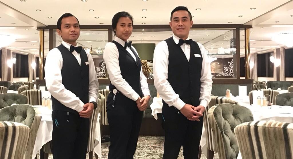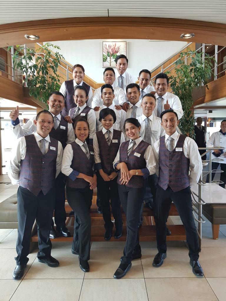 We also recruit student from the hotel school who have graduated.They are still young and energic have high spirit to work on board.